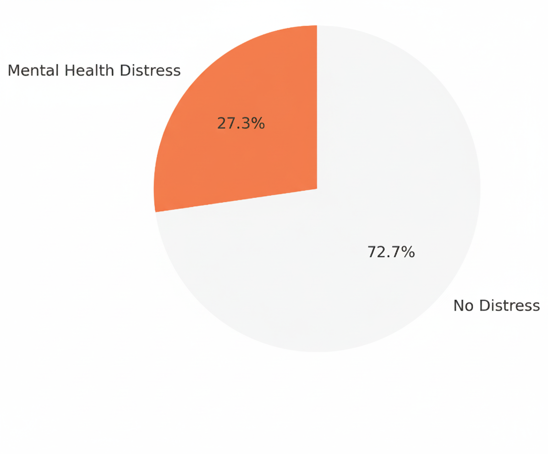 27.3% of adolescents (aged up to 19) experience mental health distress.